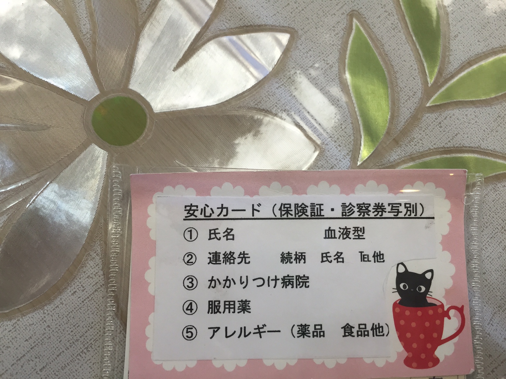 また、自宅内で倒れたときのために、カードを冷蔵庫などの目につく場所に併せて貼っておくと良いようですよ!
