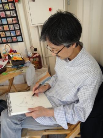 (似顔絵を描く橋爪氏)